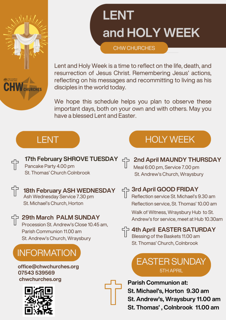 As we enter Lent, here are the Easter Dates for your diary: